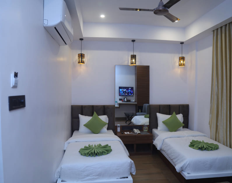 Relax in the cool comfort of air-conditioned rooms, perfect for Deoghar’s warm climate.